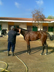 ... Eran las 10:25 horas de la mañana del 13/05/2009 cuando recibí por sorpresa, pues no acostumbramos a charlar a esas horas, de nuestro “Prepa”: ¡Hola niño! ¿Cómo estas?. Preocupado me dejas, cuando me llamas a estas horas. Mis sospechas se convertían en realidad en los siguientes segundos. Se ha “lesionado” esta mañana temprano tío, haciendo un canter en la pista interior; al cambiar de mano he notado que ha hecho un extraño, en decimas de segundo se veía que algo no iba bien, lo he parado y me he bajado. Al ir preparado con vendajes y protecciones, el caballo ha aguantado bien hasta llegar a su box, pero al descubrirle para hacerle la primera revisión, su mano delantera derecha, ha empezado a inflamarse más, ha llegado el veterinario y le hemos pinchado para calmarle el dolor, ha ido a buscar la máquina para hacerle unas placas, en cuanto sepa algo te cuento ....